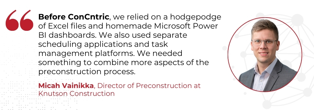 “Before ConCntric, it felt like mental gymnastics trying to figure out value engineering in a spreadsheet.” – Mike Vitkovich, Director of Preconstruction at Pankow Builders
