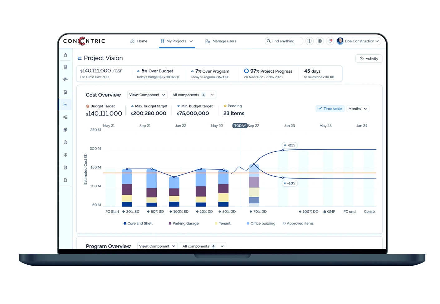 ● Correlate construction costs and program overview dynamically